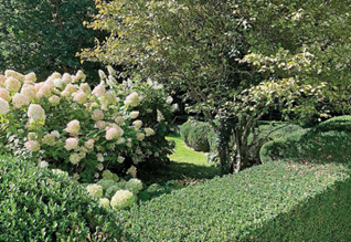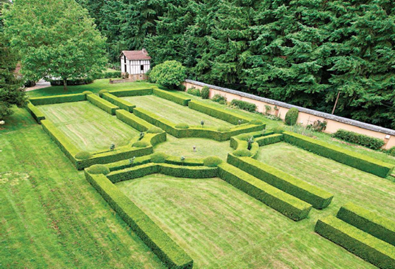 La ligne directrice était que nous devions être capables d’entretenir l’ensemble, seuls, sans le recours à des bras extérieurs. Nous n’avons peut-être pas bien anticipé que ce qui paraissait gérable, alors, pouvait se révéler plus problématique avec le poids des ans… Quoi qu’il en soit nous avons décidé de faire un grand jardin de buis inspiré de dessins italiens, mais à notre mesure.
