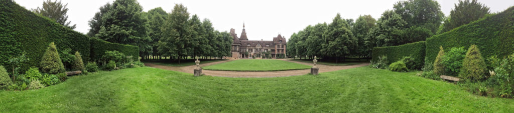 Les limites entre herbe tondue et herbe haute ont été travaillées pour permettre des promenades agréables, le long de chemins bordés d’arbustes à fleurs, dans une atmosphère vaporeuse d’où émergent ici et là des cônes d’ifs en ombres chinoises.